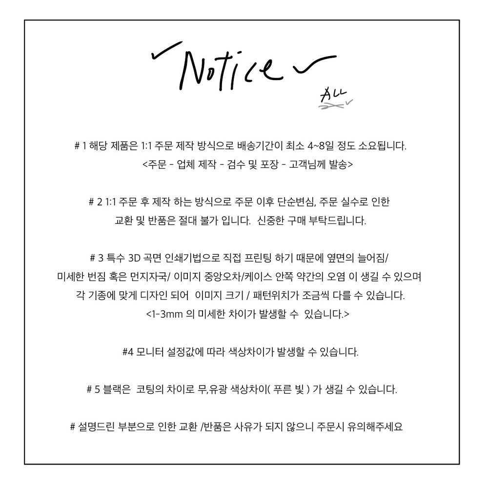 *설명드린 부분으로 인한 교환/ 반품 은 사유가 되지 않으니 주문시 유의해 주세요